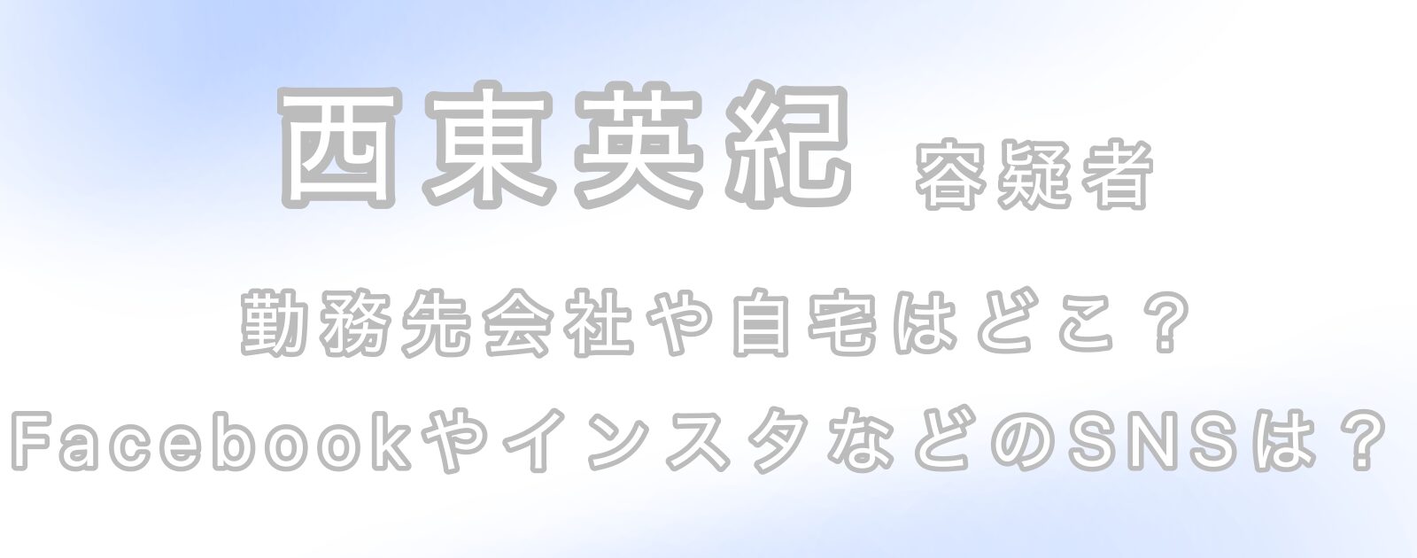 - 勤務先:西東英紀容疑者は『会社員』報道されていますが、どの会社に勤めているのかは明らかになっていません。年齢からも長年キャリアを積んでいても不思議ではありません。