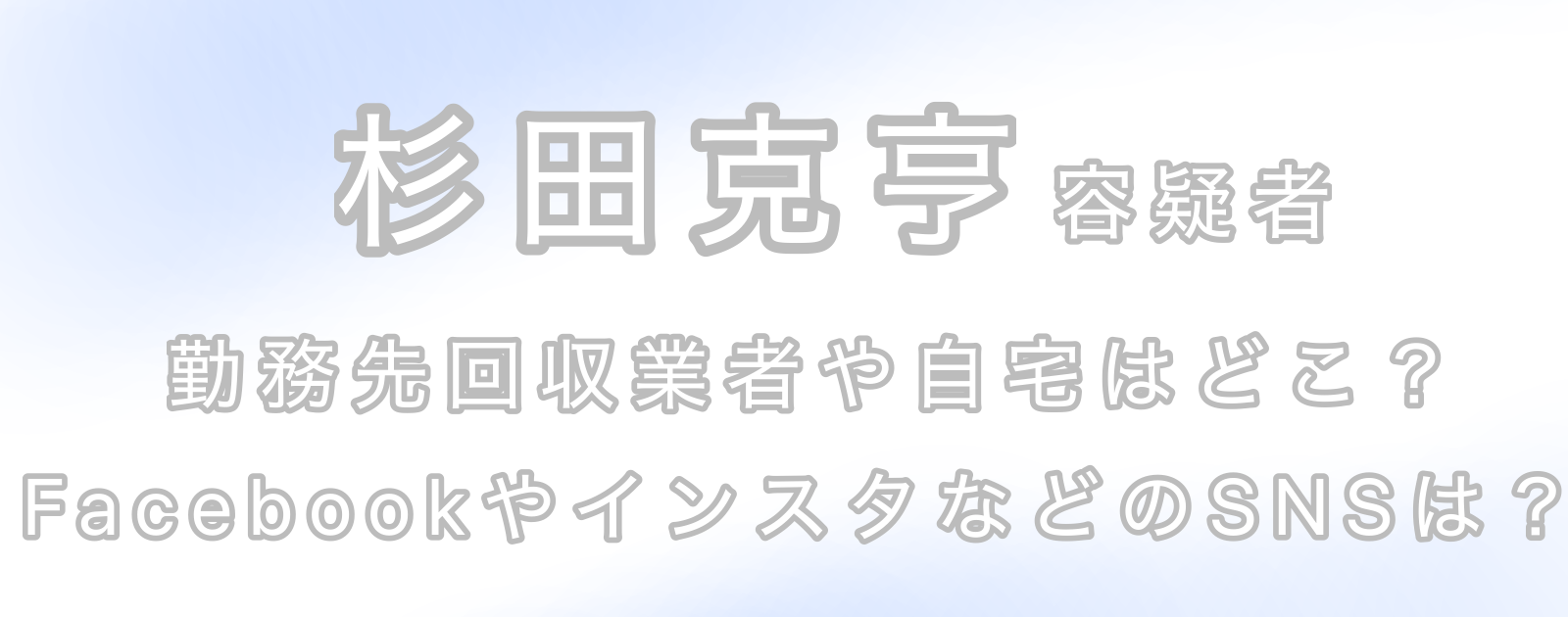 - 勤務先:杉田克亨容疑者は『不用品回収業』と報道されていますが、どの回収業者に勤めているのかは明らかになっていません。
